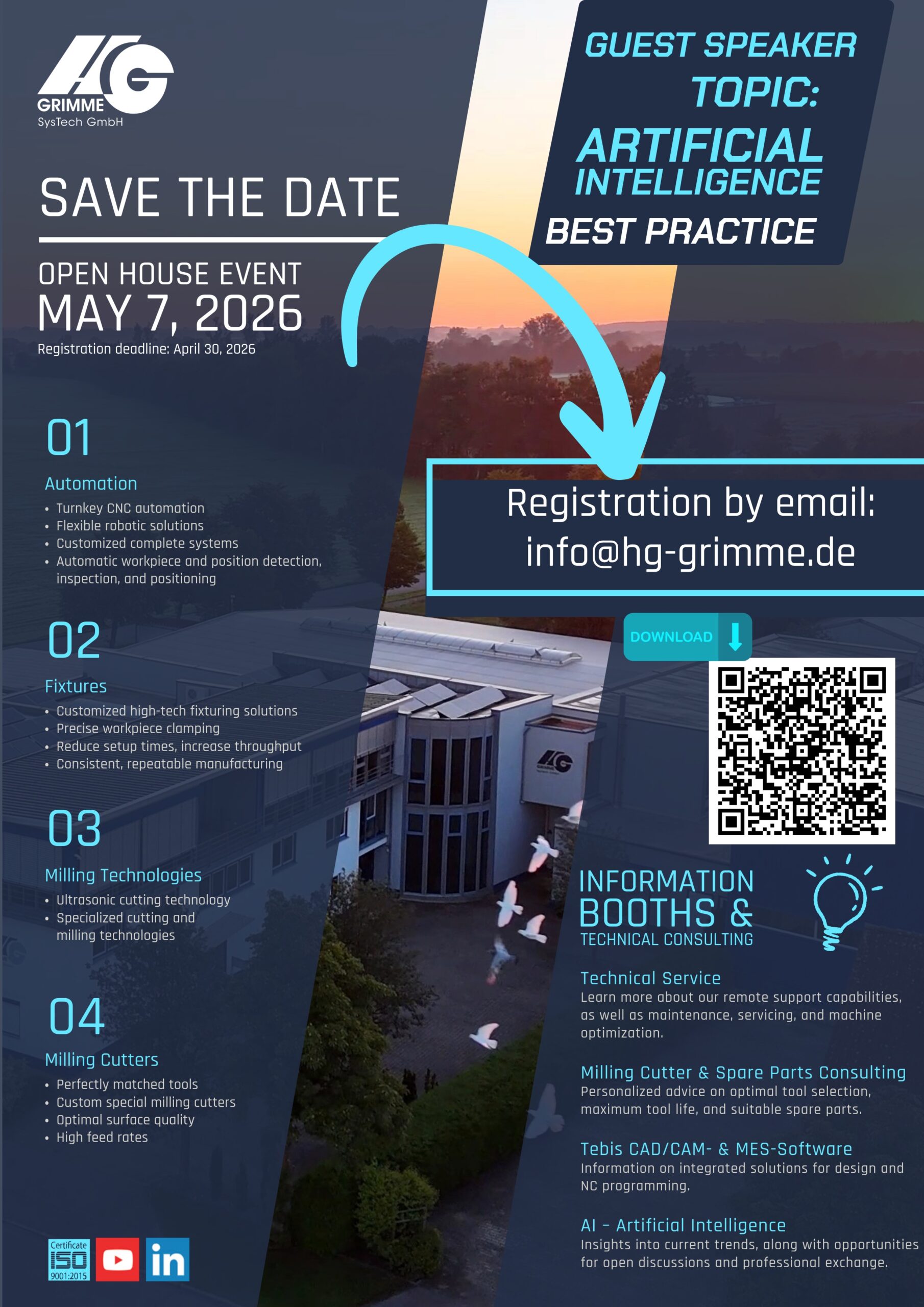 “We will be showcasing the latest solutions in CNC automation, fixture technology, and modern milling technologies. Our experts will be available at our information stands to answer your questions and engage in technical discussions. The programme will also feature a guest presentation with best-practice examples of how artificial intelligence is being used in industry.”