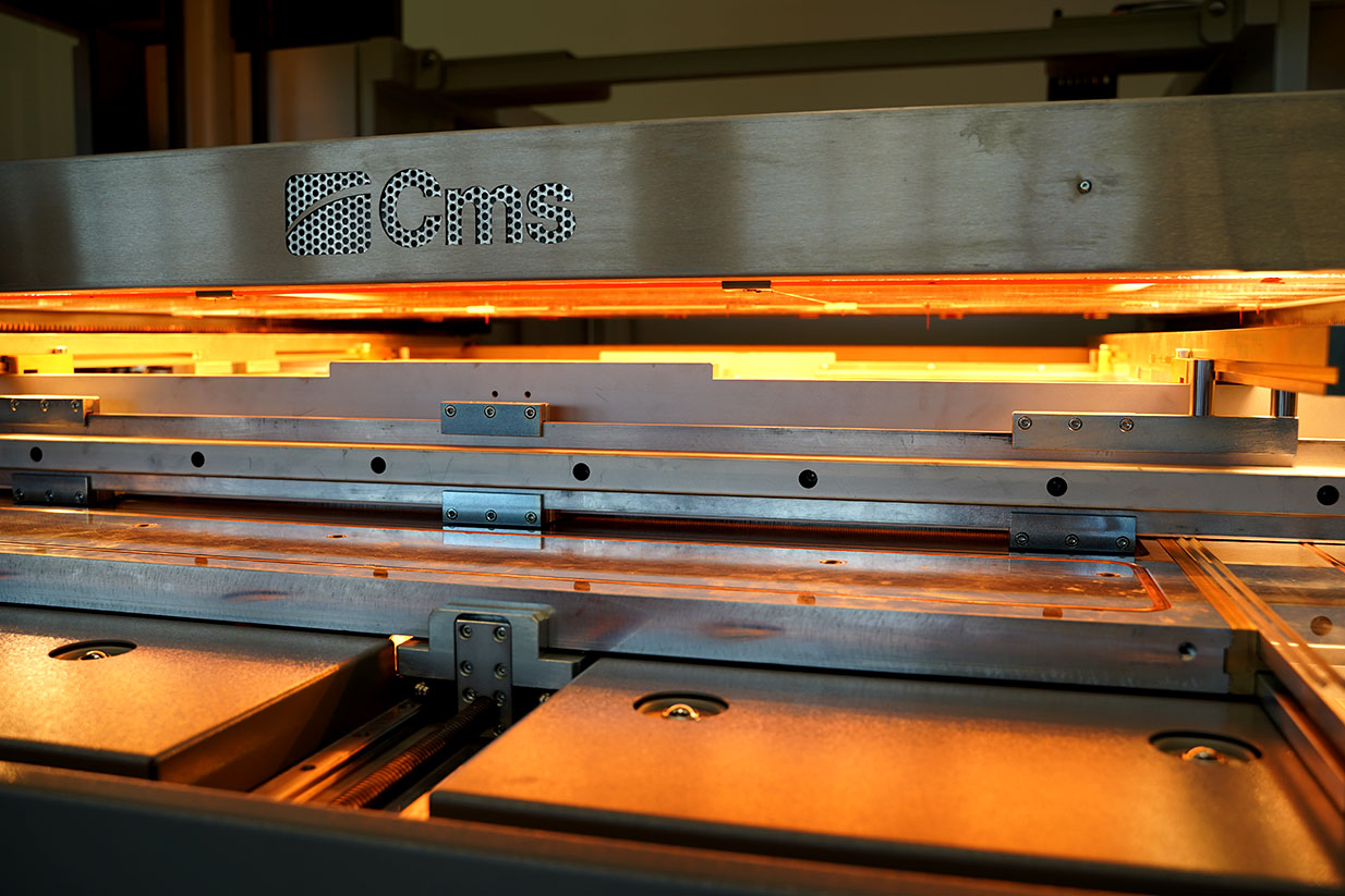 Mit den Thermoformanlagen von eidos rundet HG GRIMME SysTech das Produktsortiment ab: Durch die Produkterweiterung wird der gesamte Prozess vom Tiefziehen bis hin zum fertig gefrästen Bauteil abgedeckt. Die CMS Thermoformmaschinen sind durchdachte Hightech-Tiefziehmaschinen zur Kunststoffbearbeitung, die durch kontinuierliche Investitionen in Forschung und Innovation Bestleistungen in der Produktion verrichten.